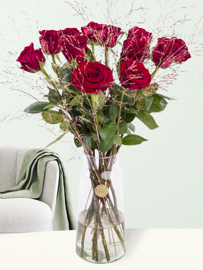 Das Besondere an diesem Weihnachten: ein Strauß roter Rosen mit goldenem Panicum. Dieser Strauß wird von unseren Blumenarrangeuren liebevoll und von Hand gebunden. Der Strauß wird als Geschenk in unserer Geschenkbox verpackt. Diese 12 Rosen haben eine Stiellänge von ca. 60 cm. Hast du keine passende Vase zu Hause? Sieh dir unsere Vasen an. Auf jeder Vase ist angegeben, wie viele Rosen sie ungefähr halten kann. So kannst du eine Vase wählen, die zu dir und deinem Strauß passt! Vergiss nicht, die Karte auszufüllen, wenn du den Strauß an jemanden verschenkst. Auf diese Weise kannst du dem Empfänger mitteilen, warum du den Strauß verschenkst und wer die Rosen an den Empfänger verschenkt hat. Wenn du die Karte nicht ausfüllst (oder keine Videobotschaft hinzufügst), wird deine Bestellung anonym bleiben!